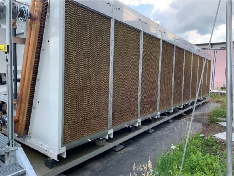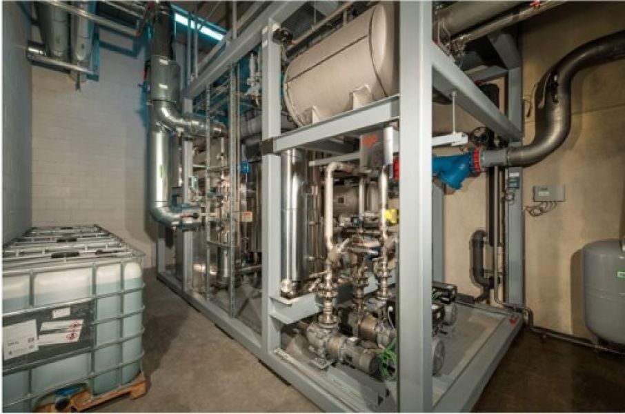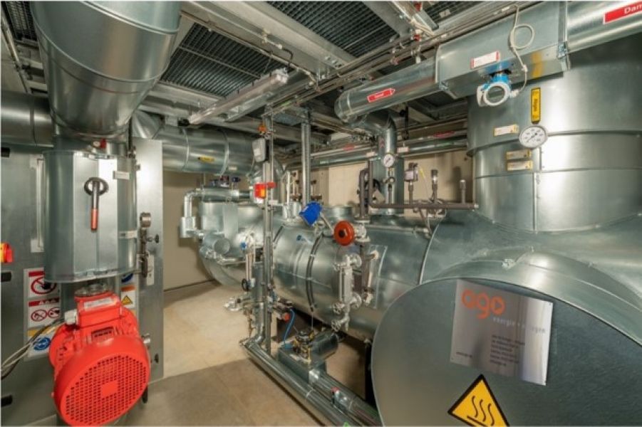 The power-heat-cold cogeneration plant planned by AGO GmbH Energie + Anlagen consists of a BHKW, waste-heat boiler and an absorption refrigeration machine ago congelo for supplying the Andechser dairy with electricity, steam and cold. The recooling of the absorber takes place resource-saving with adiabatic coolers.