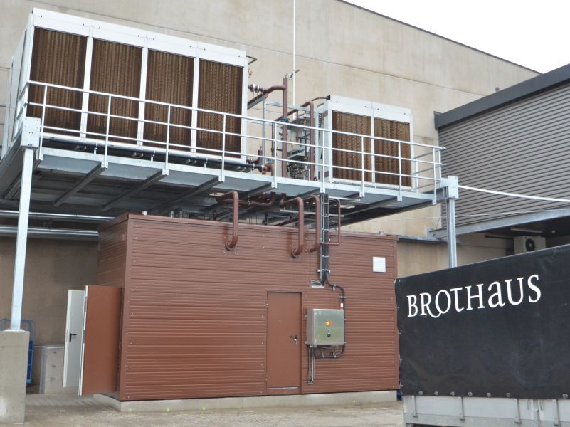 Installation of a new KWKK plant on the premises of Brothaus GmbH in Burgbernheim. Consisting of a CHP for generating hot water with connection to the existing heating network and supplying a newly installed Congelo absorption refrigeration system.