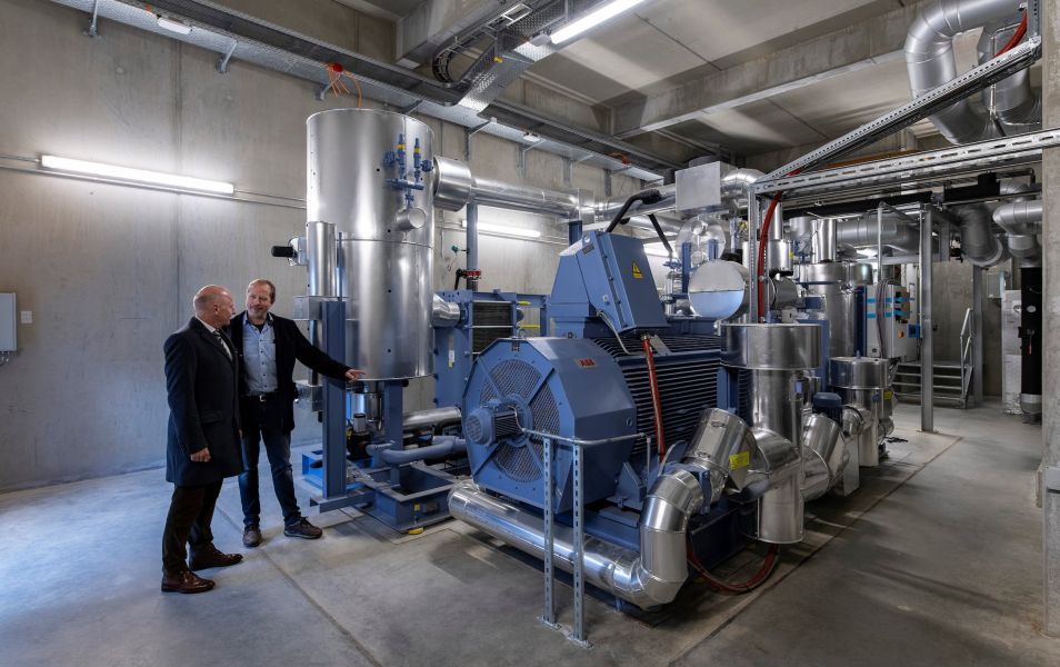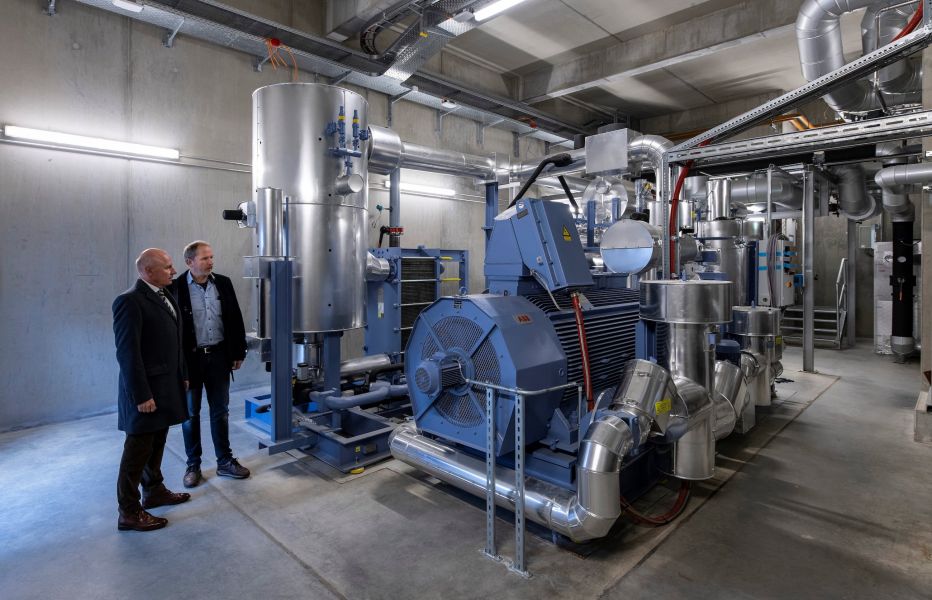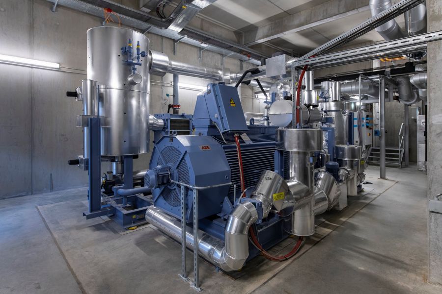 Installation of a compression heat pump for generating heat for the district heating system Erding by using thermal water.