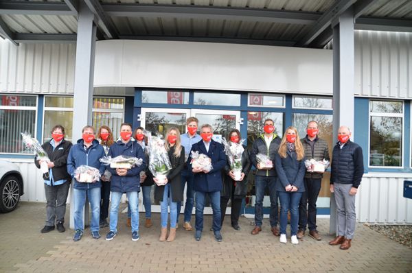 Die AGO GmbH wollte es sich dennoch nicht nehmen lassen, die langjährigen Mitarbeiter offiziell zu ehren – was normalerweise zur Weihnachtsfeier stattfindet. Daher haben der Betriebsrat und die Geschäftsführer der AGO GmbH den 19 Kolleginnen und Kollegen am 19. November vor dem Firmengebäude ihre hochverdienten Glückwünsche und Jubiläums-Präsente übergeben.