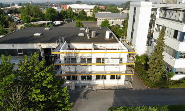 Seit Anfang Juli stehen im übrigen auch Bürocontainer auf dem Firmengelände, in welche übergangsweise unsere Abteilung Thermotechnik gezogen ist.
