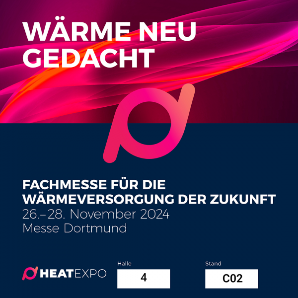 Gemeinsam mit der RheinEnergie AG werden wir vom 26.11.24 – 28.11.24 auf der Heatexpo als Aussteller vertreten sein.