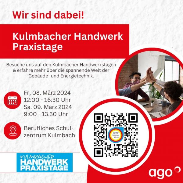 Gemeinsam mit Heizung-Sanitär Franz GmbH, Schwender Energie- und Gebäudetechnik, Ingenieurbüro Wiegel GmbH, Sell GmbH und SPIE unterstützt die AGO GmbH Energie + Anlagen die Kulmbacher SHK-Innung. Ziel der Handwerk Praxistage ist es, Schülerinnen und Schülern handwerkliche Tätigkeiten näher zu bringen und die attraktiven Berufsfelder des modernen Handwerks, begleitend zum Unterricht, praxisnah vorzustellen.