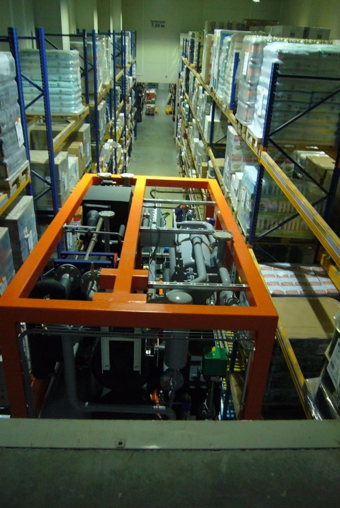 Kraft-Wärme-Kälte-Koppelungsanlage bestehend aus einem BHKW und einer Absorptionskältemaschine ago congelo® zur Versorgung des Betriebes mit Strom, Wärme und Kälte.