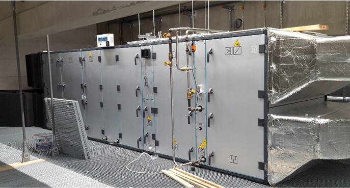 Für die Be- und Entlüftung des Sozialtraktes wurde eine Zu- u. Abluftanlage mit Wärmerückgewinnung verbaut. Für den Kompressorraum, das Gefahrstofflager und den Batterieraum wurden einzelne Abluftanlagen installiert, um die anfallenden Wärmelasten abzuführen. Des Weiteren wurden vier Sonderabluftanlagen installiert, welche die ölhaltige Abluft an den Maschinen in Reinraum absaugen. Daneben wurde auch eine Staubsaugeranlage eingebaut, die für den Produktionsbereich und für den Technikbereich genutzt werden kann.